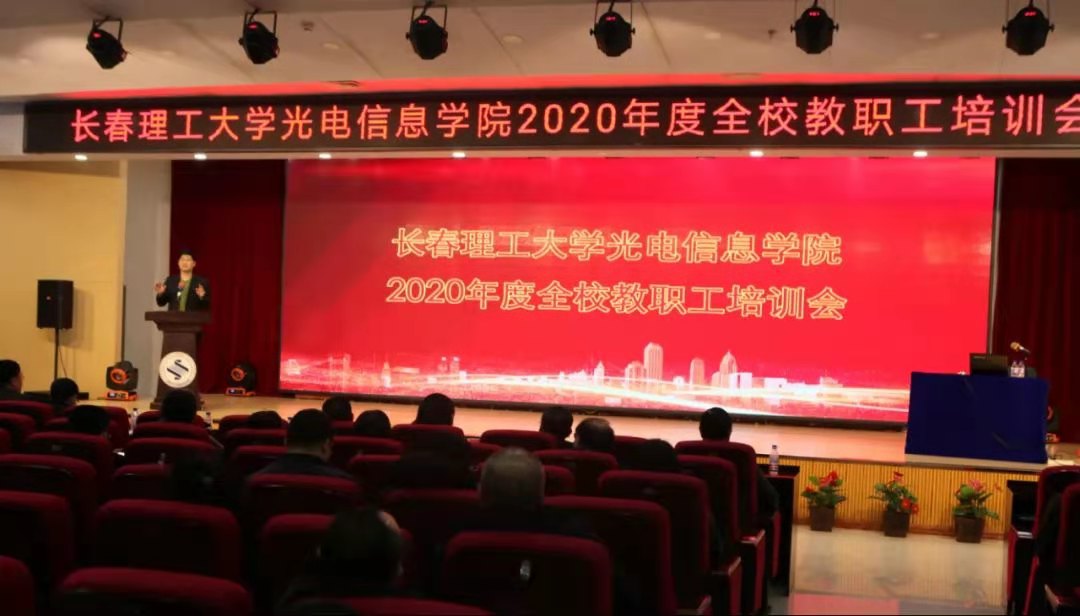 12 月 26 日上午,長春理工大學(xué)光電信息學(xué)院在學(xué)校圖書館報告廳召開全校教職工培訓(xùn)會,學(xué)校董事長、校長王思迪出席并作專題講座。學(xué)校顧問王富遠(yuǎn)、董事陳洪秋、校領(lǐng)導(dǎo)班子成員、全體教職員工參加學(xué)習(xí),講座由副校長蘇佩衡主持。