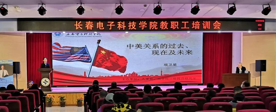 4 月 14 日下午,長春電子科技學(xué)院人事處、商學(xué)院共同組織的“中美關(guān)系的過去、現(xiàn)在及未來”報(bào)告會(huì)在圖書館報(bào)告廳舉辦,報(bào)告會(huì)由我校商學(xué)院教授、博士生導(dǎo)師項(xiàng)衛(wèi)星主講,黨委書記韓秋葉、各單位負(fù)責(zé)人及全校教職工參加此次會(huì)議,報(bào)告會(huì)由黨委副書記鞠秀晶主持。