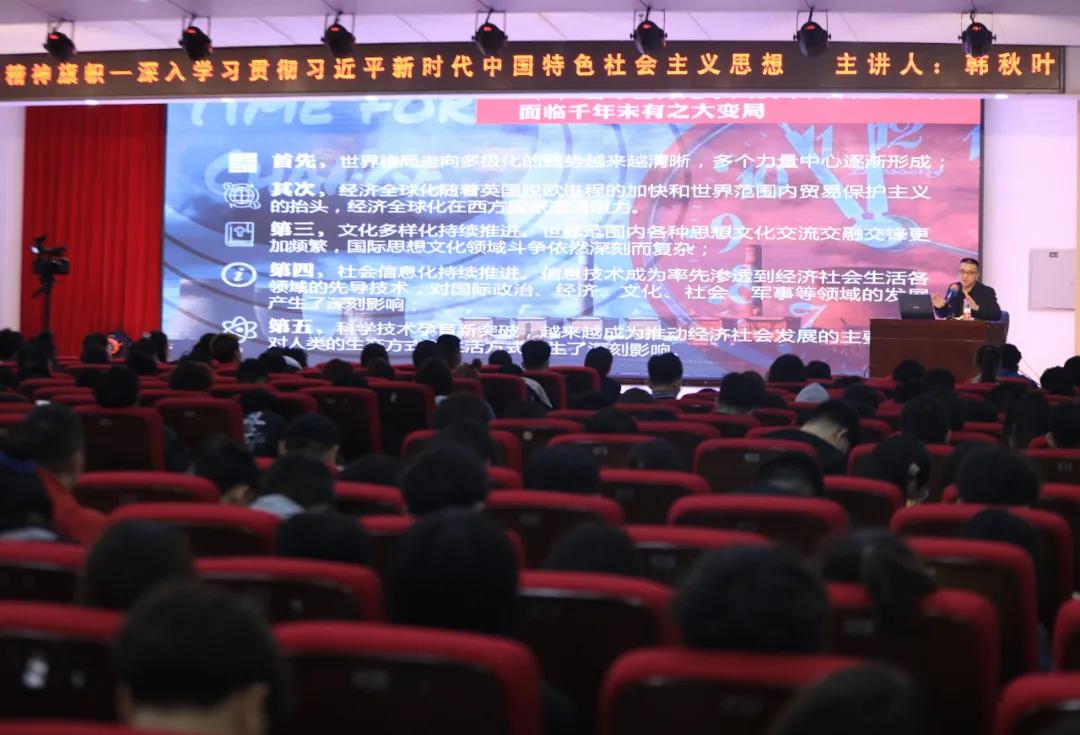 為慶祝中國共產(chǎn)黨成立 100 周年,深入推進黨史學(xué)習(xí)教育,做好師生思想政治工作,2021 年 4 月 21 日,我校黨委書記韓秋葉以<<高揚新時代的精神旗幟--深入學(xué)習(xí)貫徹習(xí)近平新時代中國特色社會主義思想>>為題,給師生們上了一堂生動精彩的思政課。400 余名師生傾心聆聽,報告廳內(nèi)氣氛熱烈。