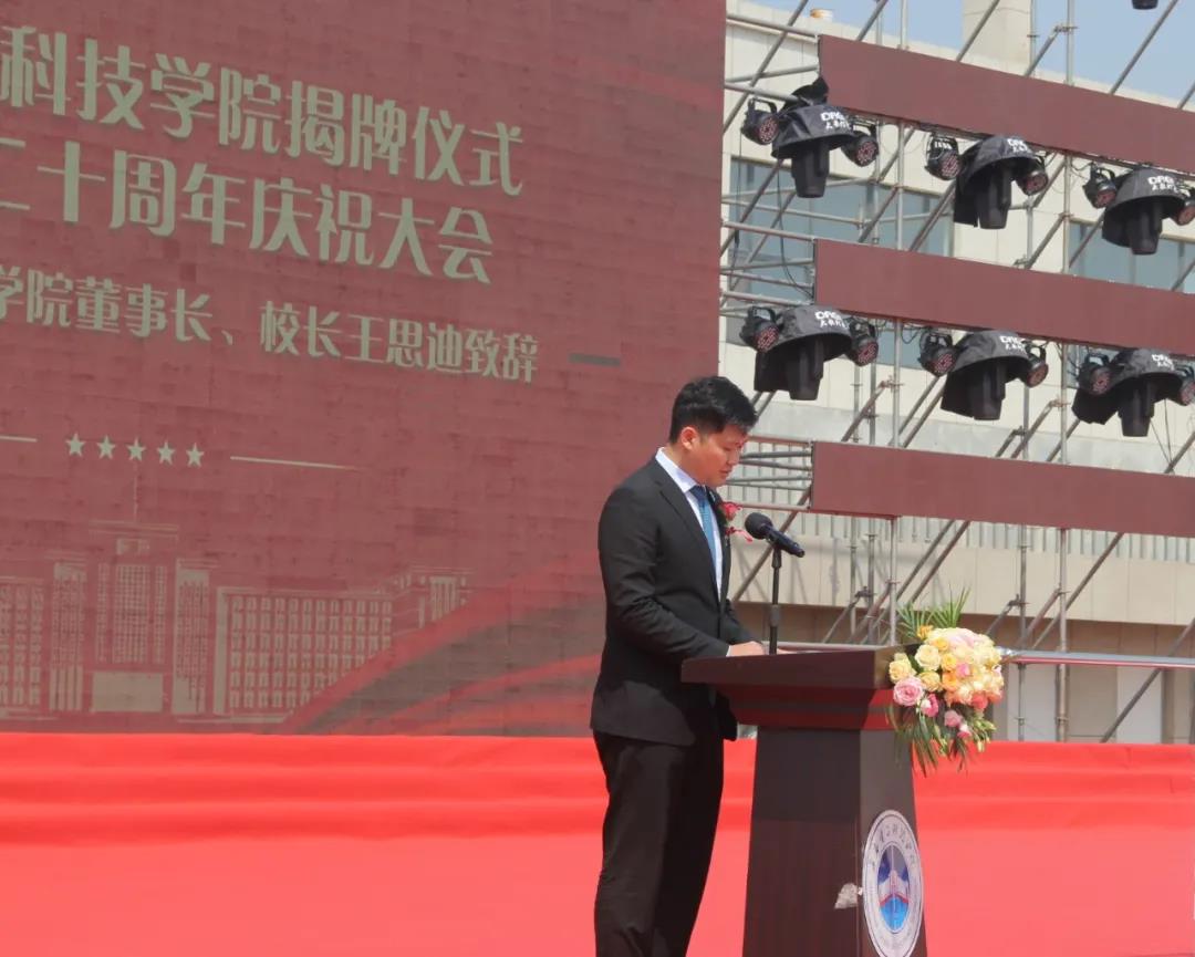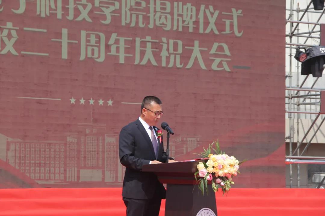 長(zhǎng)春電子科技學(xué)院董事長(zhǎng)、校長(zhǎng)王思迪在致辭中,首先對(duì)蒞臨大會(huì)的各級(jí)領(lǐng)導(dǎo)表示熱烈歡迎、對(duì)多年來(lái)關(guān)心支持學(xué)校發(fā)展的省教育廳、市委市政府、社會(huì)各界朋友、各兄弟院校及校友表示衷心感謝。他表示,二十年來(lái),長(zhǎng)春電子科技學(xué)院始終以應(yīng)用型人才培養(yǎng)、科學(xué)研究、社會(huì)服務(wù)和文化的傳承創(chuàng)新為己任,取得了令人矚目的成績(jī),現(xiàn)已建設(shè)成為以光機(jī)電算為專(zhuān)業(yè)特色、以產(chǎn)學(xué)研創(chuàng)融合發(fā)展為辦學(xué)特色、以“光電精神”為核心的校園文化特色的應(yīng)用型高校。