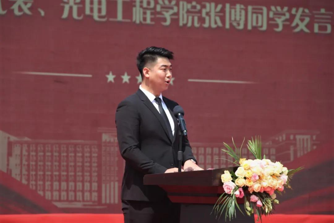 學(xué)生代表、光電工程學(xué)院張博同學(xué)發(fā)言。她感恩學(xué)校的辛勤培育,并代表所有的同學(xué)莊嚴(yán)承諾:我們不忘母校之恩,不負(fù)母親之名,我們一定會(huì)讓母校為我們而驕傲!