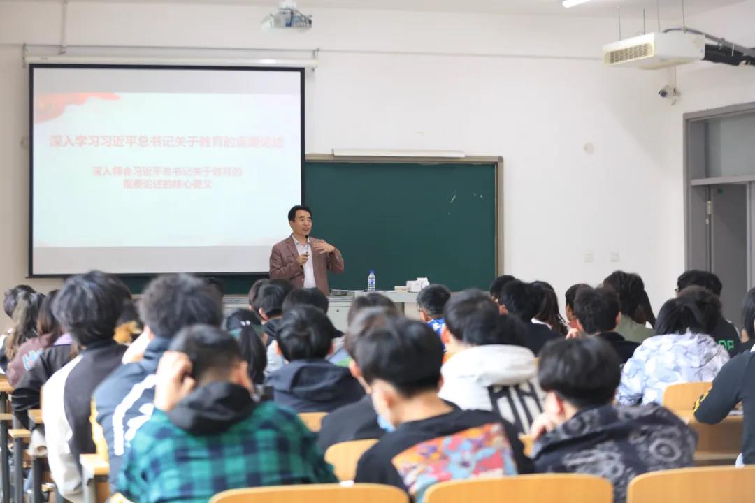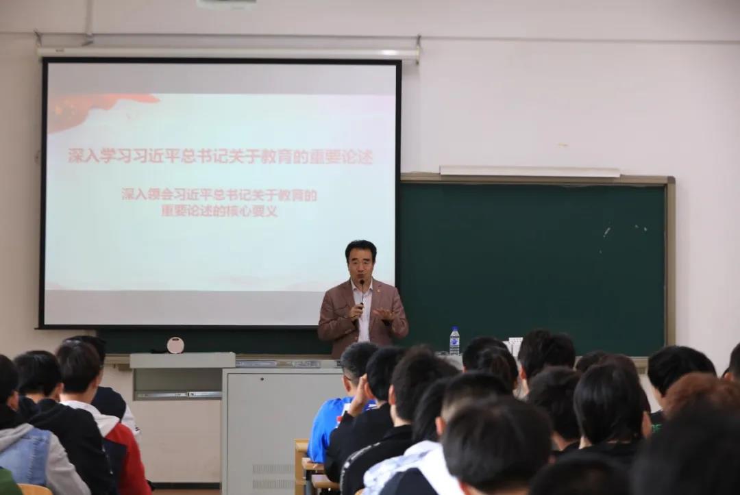 鞠校長(zhǎng)系統(tǒng)性講授了習(xí)近平總書(shū)記關(guān)于中國(guó)教育發(fā)展的一系列新理念、新思想、新觀點(diǎn)。在授課中,鞠校長(zhǎng)結(jié)合自身的工作學(xué)習(xí)經(jīng)歷,用幽默的語(yǔ)言、詳實(shí)的數(shù)據(jù)、精彩的案例,對(duì)中國(guó)高校教育進(jìn)行全面性的剖析,指出習(xí)近平總書(shū)記關(guān)于教育的重要論述的戰(zhàn)略視野,并通過(guò)綜合分析國(guó)際國(guó)內(nèi)大變局對(duì)教育的深遠(yuǎn)影響,引導(dǎo)同學(xué)們辯證認(rèn)識(shí)新時(shí)代中國(guó)教育的發(fā)展走勢(shì)。