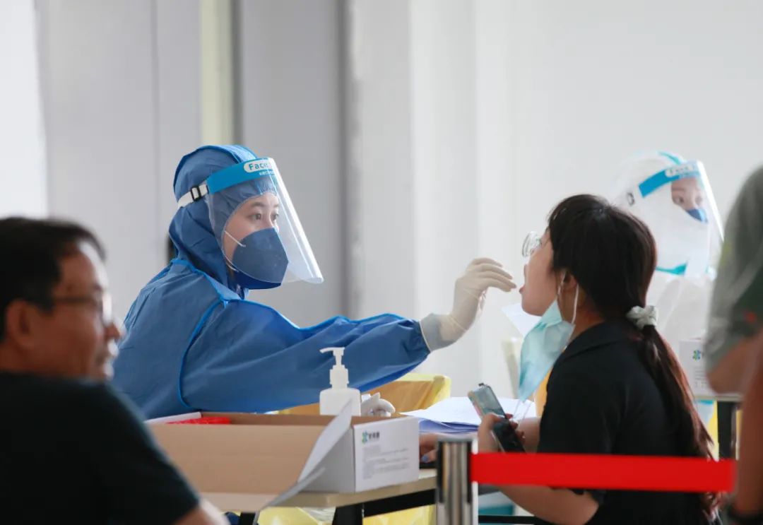 前來(lái)檢測(cè)的師生聽(tīng)從指揮,佩戴口罩,距離相隔一米,有序排隊(duì),按照單位分批接受采樣和篩查。