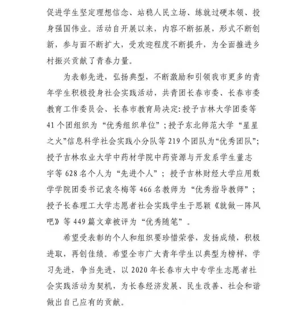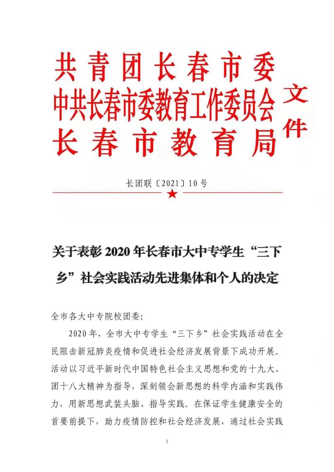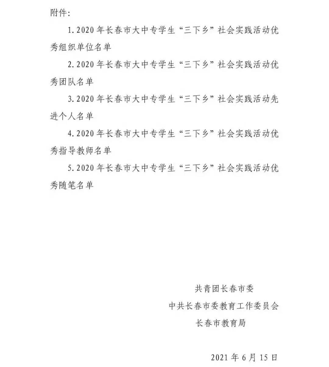 喜報 | 關(guān)于表彰 2020 年長春市大中專學(xué)生“三下鄉(xiāng)”社會實踐活動先進集體和個人的決定