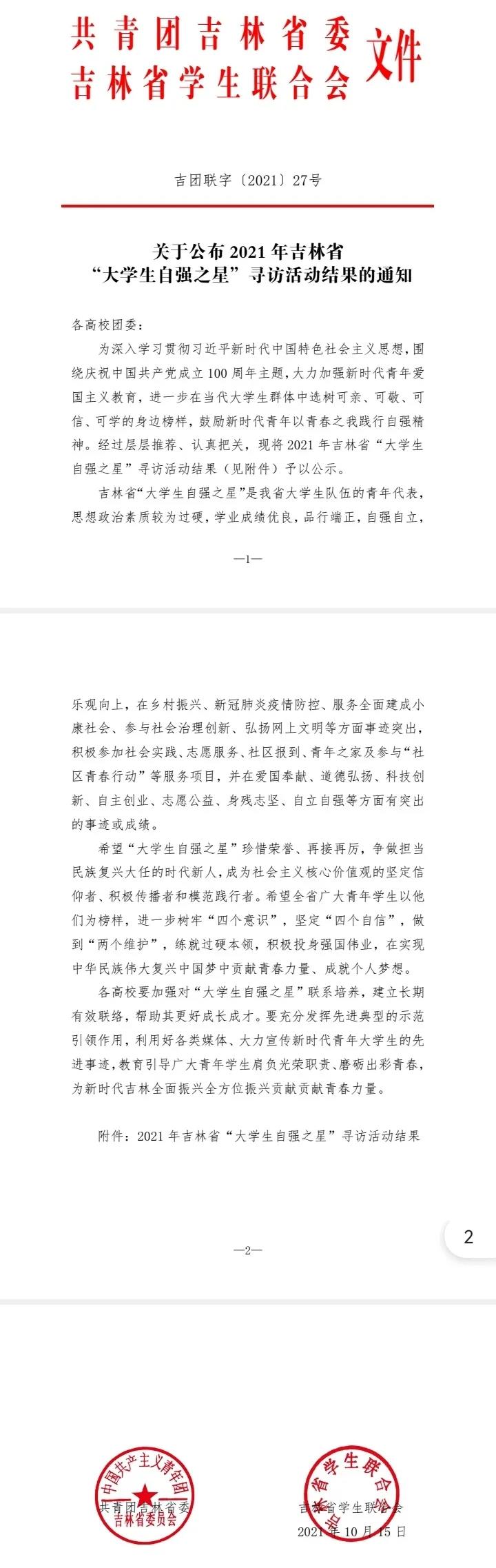 喜報(bào) | 我校學(xué)生榮獲“大學(xué)生自強(qiáng)之星”稱號(hào)