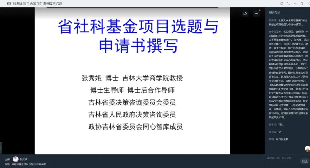 為進一步提高我校吉林省社科基金項目申報質(zhì)量和立項率,推動2022年省社科基金項目申報立項工作再上新的臺階,2022年1月14日,我校特邀國家社科基金項目評審專家、吉林大學(xué)張秀娥教授為學(xué)校教師開展了題為《省社科基金項目選題與申請書撰寫》的線上培訓(xùn)。培訓(xùn)會由學(xué)校科研處、商學(xué)院承辦。商學(xué)院院長耿剛、科研處副處長尹晶、擬申報省社科項目的60余名教師參加了本次培訓(xùn)。會議由商學(xué)院耿剛院長主持。