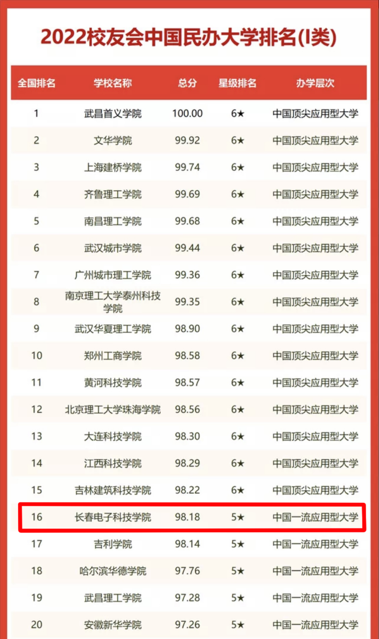長(zhǎng)春電子科技學(xué)院在中國(guó)民辦大學(xué)排名中位列第16位