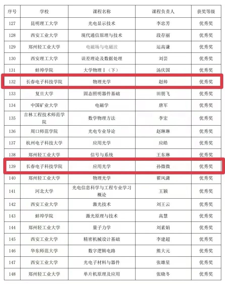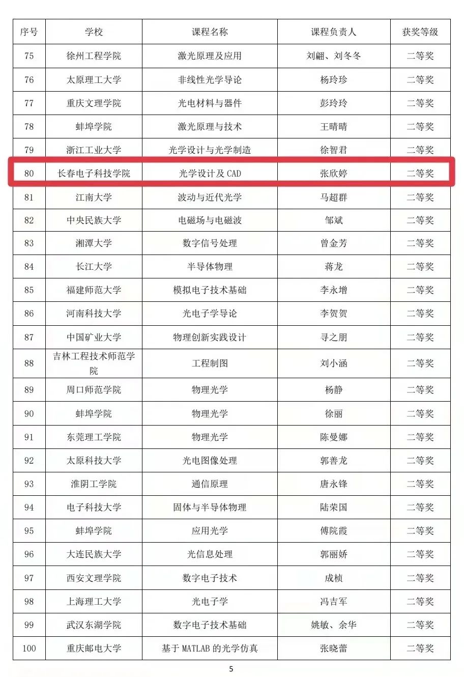 按照《關(guān)于征集和評(píng)選全國(guó)高校光電信息科學(xué)與工程專業(yè)優(yōu)秀課程思政教學(xué)案例的通知》要求,經(jīng)課程負(fù)責(zé)人申報(bào)、學(xué)校推薦、專家評(píng)審,評(píng)選出優(yōu)秀課程思政教學(xué)案例104 項(xiàng)。我校張欣婷老師負(fù)責(zé)課程“光學(xué)設(shè)計(jì)及CDA”榮獲二等獎(jiǎng),趙帥老師負(fù)責(zé)的課程“物理光學(xué)”以及孫微微負(fù)責(zé)課程“應(yīng)用光學(xué)”分別榮獲優(yōu)秀獎(jiǎng)。