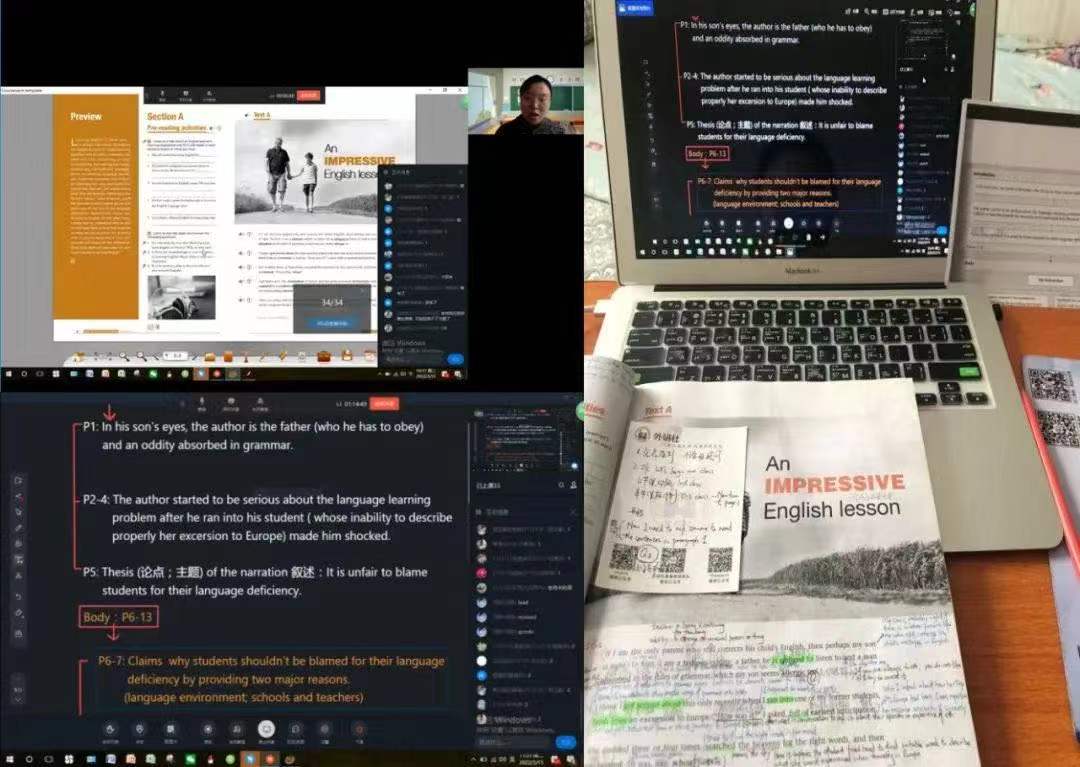 寒雪梅中盡,春風柳上歸。新學期按照學校的相關要求,大學外語教學部在 2 月 28 日啟動線上教學。開課前兩周,大外部召開班子工作會議,全體成員結合新學期課程計劃,縝密思考,精心部署,科學合理安排本學期的線上課程,力爭把多元性、思政性和體驗性有機結合到英語課程中。部領導班子和全體教師明確責任分工,確保網課質量。在課程進行的兩周時間里,大學外語教學部全體教師依托網絡平臺,線上授課有序進行著。黨員教師充分發(fā)揮了模范先鋒的帶頭作用,在堅守崗位中扛起更大的擔當。大外部的教師們不斷研討新的教學方式,備課更精細,講解更到位,提升了大學英語課程的課堂魅力和教學質量,保證教學效果,做到技術平臺熟練用,課程資源巧加工,教學方式合理選,教學環(huán)節(jié)可把控。一臺電腦堅守著一份使命,每一位教師的愛與責任成就了線上教學的有序和精彩。