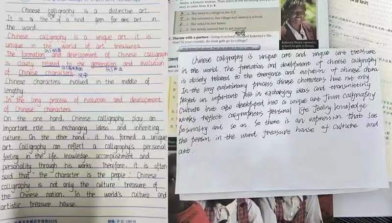 學生完成課程作業(yè)(課堂筆記整理、課后練習、主題思考)與慕課作業(yè)(慕課視頻學習、慕課筆記、慕課測試),并在釘釘圈子中發(fā)放的作業(yè)任務中提交筆記照片,以及英語作文。進行教師點評與生生互評。