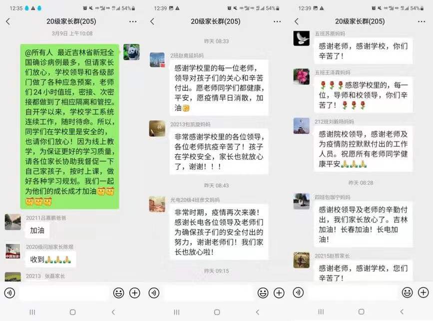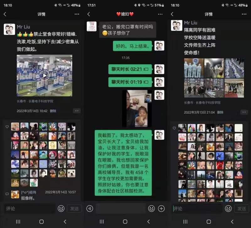疫情就是命令,防控就是責任。因吉林疫情防控形勢嚴峻,長春電子科技學院實行封閉管理,是這樣一支團隊,進入了戰(zhàn)時狀態(tài)。他們主動作為、勇于擔當,堅守學生陣地,吃住皆在學校,24小時堅守在工作崗位;他們積極和學生家長溝通,利用微信群及時和家長溝通、匯報學生近況,加強了家長對學校的信任與肯定;他們積極開展心理疏導,及時為學生答疑解惑,引導學生科學理性應對疫情、聽從學校管理。在這特殊時刻,家里的親人成為了遠方的牽掛,校園里的孩子則成為了重中之重。用實際行動詮釋了“將小我融入大我”的師者擔當。