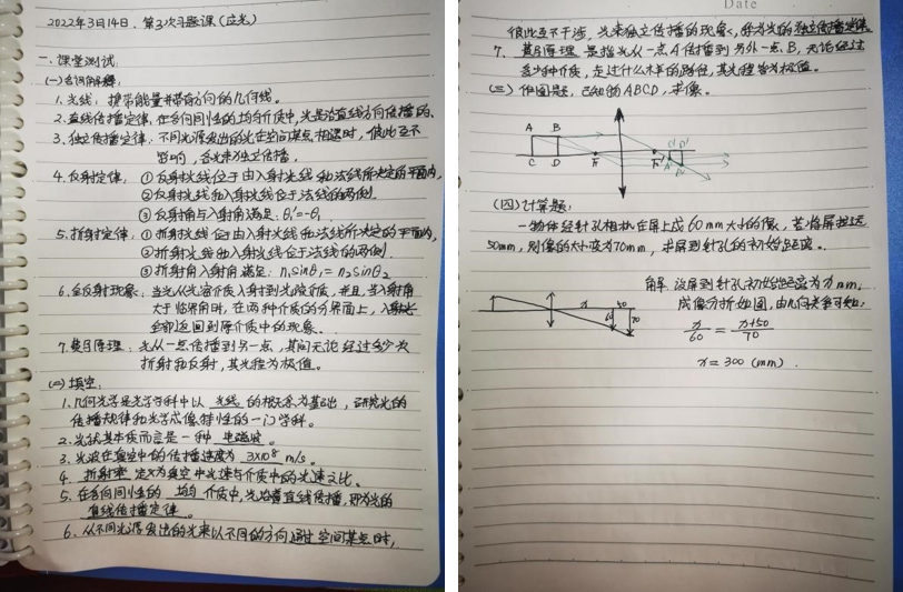 上課期間,要求所有同學(xué)記錄課堂筆記,在下課前通過隨機(jī)點(diǎn)名的方式檢查學(xué)生的筆記,鼓勵(lì)學(xué)生在筆記上記錄對(duì)課堂內(nèi)容的思考,督促學(xué)生全程參與學(xué)習(xí)。