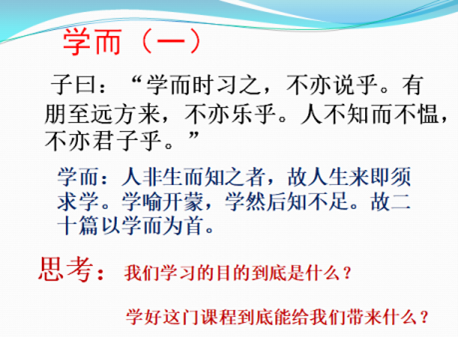 借著思政教育融入到當(dāng)代大學(xué)生課堂的改革教育春風(fēng),本人在本學(xué)期中主要從《論語》的《學(xué)而》篇入手,結(jié)合本門課程教學(xué)內(nèi)容,與學(xué)生共同探索教學(xué)思政教育新領(lǐng)域。另外,會(huì)重點(diǎn)關(guān)心個(gè)別被隔離同學(xué)的心理健康問題。同時(shí),也經(jīng)常會(huì)私下和同學(xué)們聊聊考研話題,無形中讓同學(xué)們感到考研的重要性和可實(shí)現(xiàn)性。