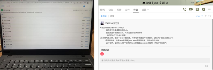 學(xué)生完成課程作業(yè)(課堂筆記整理、課后練習(xí)、主題思考)與慕課作業(yè)(慕課視頻學(xué)習(xí)、慕課筆記、慕課測(cè)試),并在釘釘圈子中發(fā)放的作業(yè)任務(wù)中提交筆記照片,以及英語作文。進(jìn)行教師點(diǎn)評(píng)與生生互評(píng)。