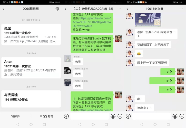 2.疫情期間學(xué)生課余時(shí)間增多,為了讓學(xué)生有效利用課余時(shí)間和豐富自己的專業(yè)知識(shí),趙老師專門錄制了CAD/CAM軟件教學(xué)視頻,并通過百度網(wǎng)盤的形式發(fā)送給學(xué)生,督促學(xué)生積極學(xué)習(xí),并通過微信指導(dǎo)答疑。