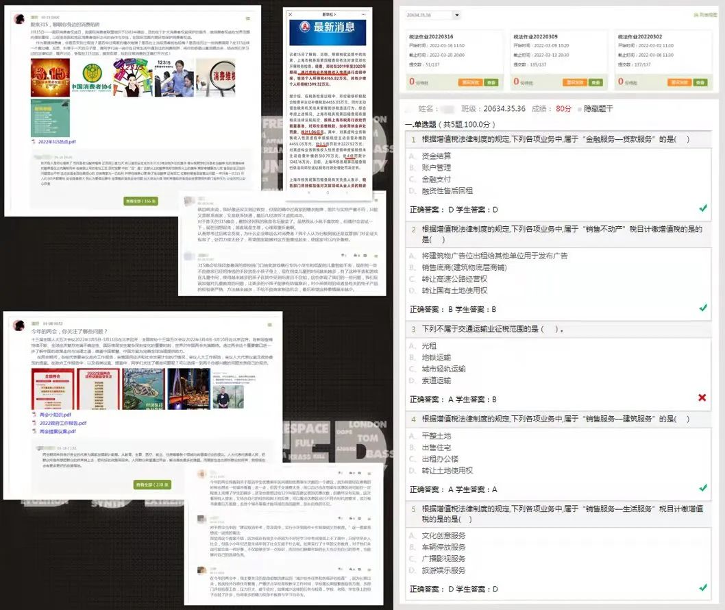 4. 挖掘課程中的思政元素,通過發(fā)布學(xué)生感興趣的話題討論以及對(duì)熱點(diǎn)新聞的分析,激發(fā)學(xué)生的學(xué)習(xí)興趣,讓學(xué)生由被動(dòng)學(xué)習(xí)到主動(dòng)思考,帶著問題參與到課堂互動(dòng)當(dāng)中,營(yíng)造在線課堂的活躍氣氛,使《稅法》課堂能夠不說教、不枯燥,但有深度、有思想、有立場(chǎng),不僅能教授學(xué)生稅法專業(yè)知識(shí),更能培養(yǎng)學(xué)生的納稅意識(shí)、愛國(guó)情懷。
