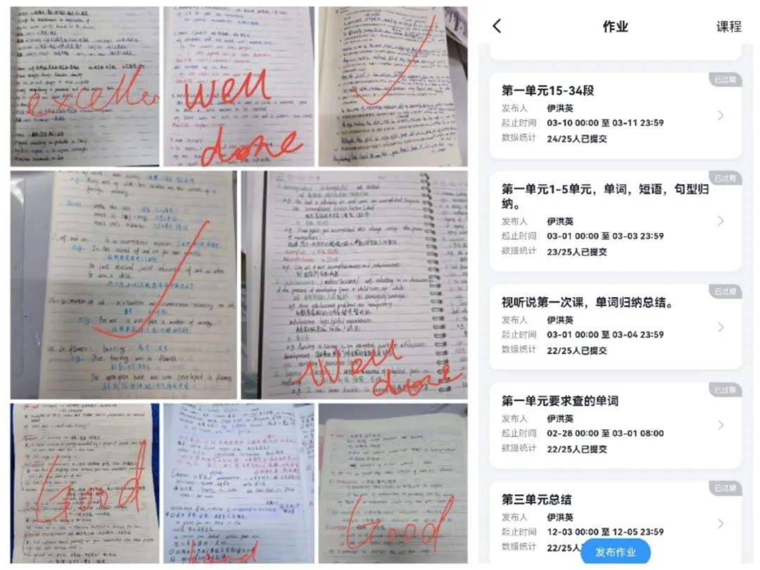 課后及時(shí)上傳補(bǔ)充資料和視頻,發(fā)布課后作業(yè),并及時(shí)檢查學(xué)生筆記照片并予以反饋。