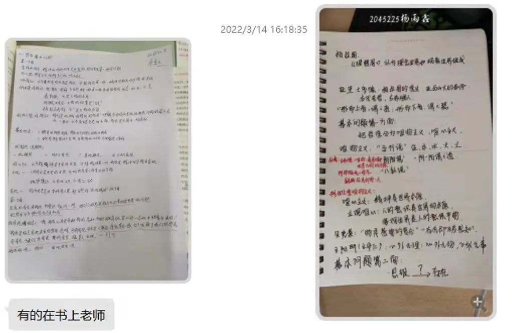 孫博老師鼓勵(lì)同學(xué)們將課堂筆記在班里群中進(jìn)行展示,每個(gè)人都能清楚觀察到自己所遺漏的知識(shí),也為下一步教學(xué)實(shí)施奠定了基礎(chǔ)。
