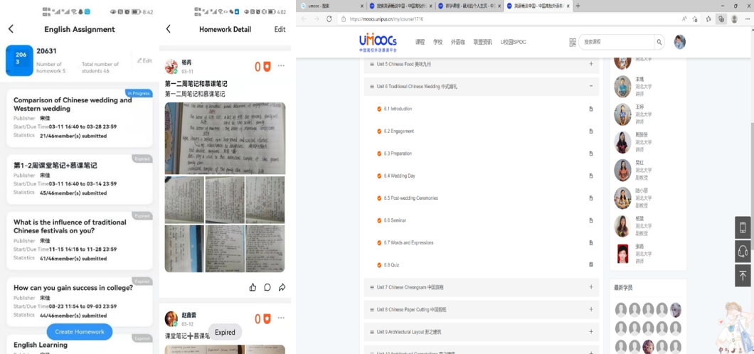 Step 2: 在UMoocs 平臺(tái),為學(xué)生選擇在線學(xué)習(xí)課程《英語暢談中國(guó)》,敦促學(xué)生在規(guī)定時(shí)間內(nèi)完成課程學(xué)習(xí)、在線測(cè)試與筆記整理。