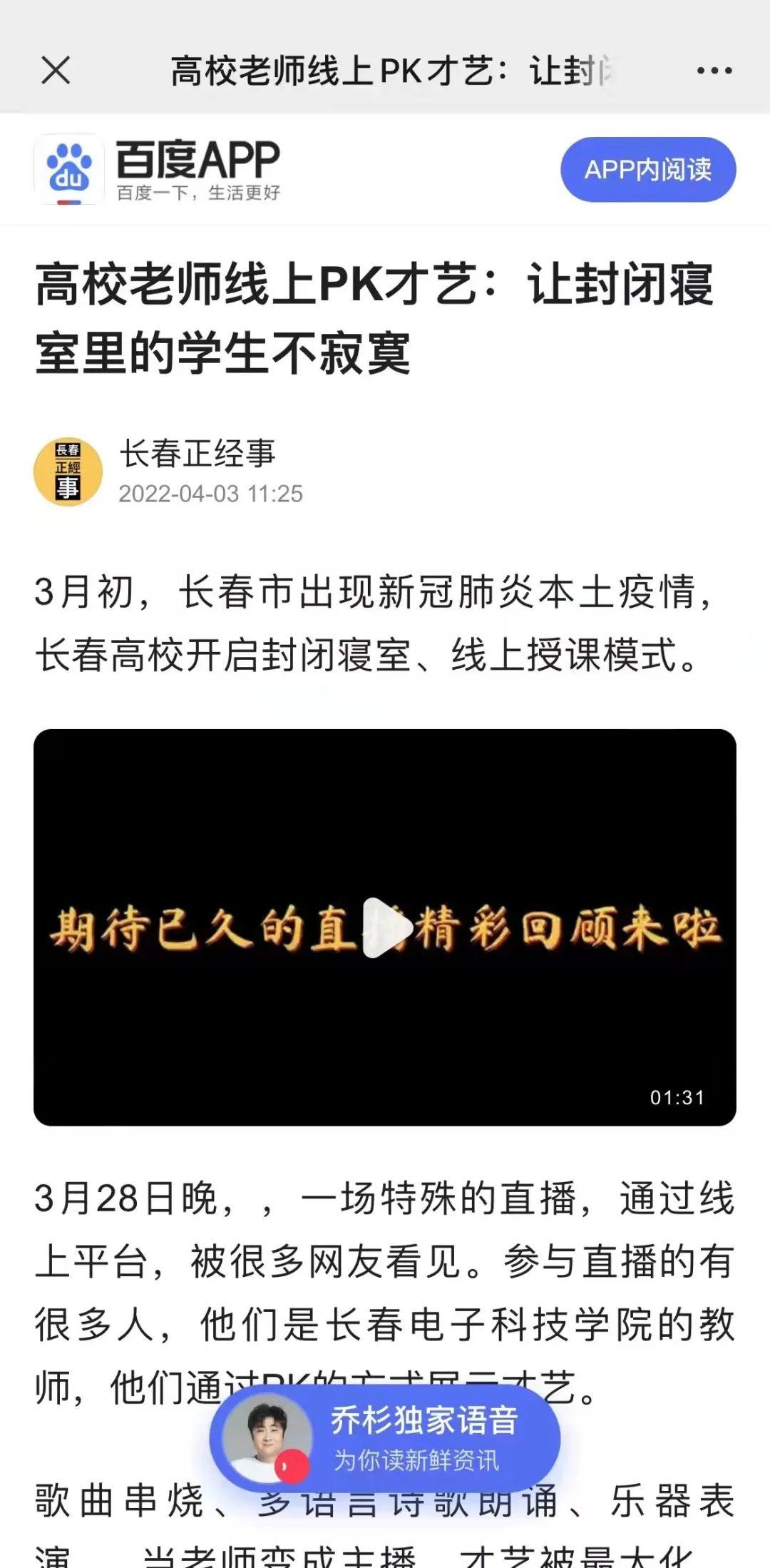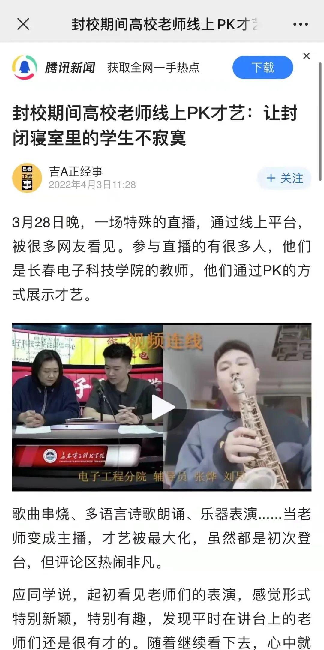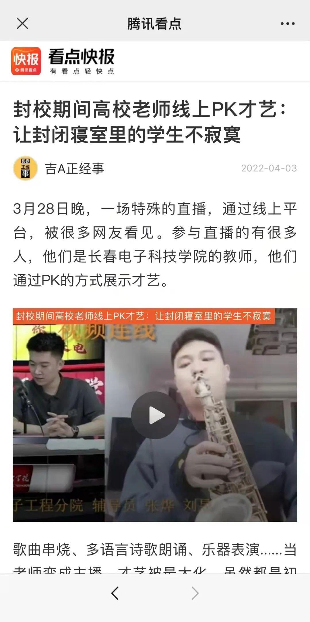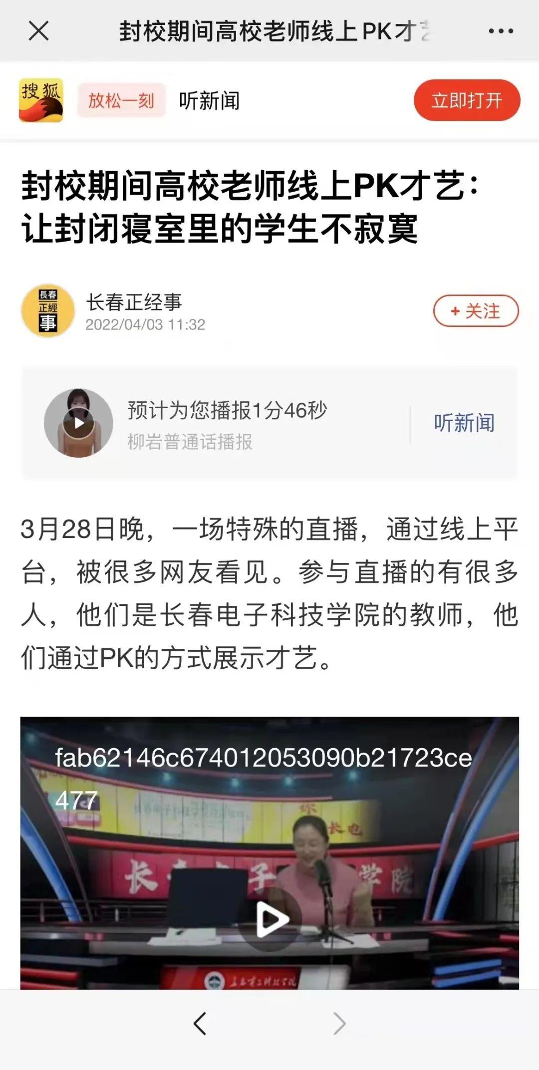 3 月初,長(zhǎng)春市出現(xiàn)新冠肺炎本土疫情,我校開(kāi)啟封閉管理,線(xiàn)上授課模式。為緩解同學(xué)們焦慮、恐慌等負(fù)面情緒。3 月 28 日晚,我校組織了一場(chǎng)特殊的直播,我校教師通過(guò)PK的方式向同學(xué)們展示才藝,歌曲串燒、多語(yǔ)言詩(shī)歌朗誦、樂(lè)器表演...,給同學(xué)們帶來(lái)了無(wú)盡的歡樂(lè)。