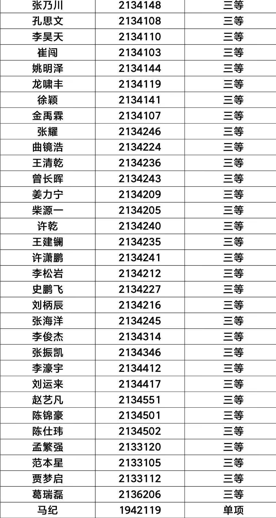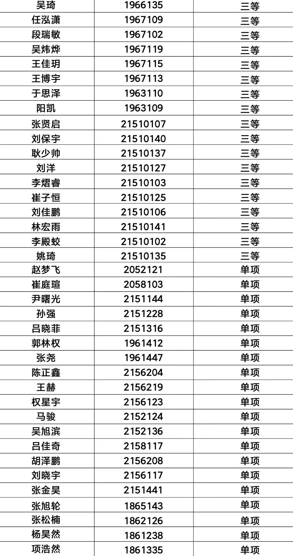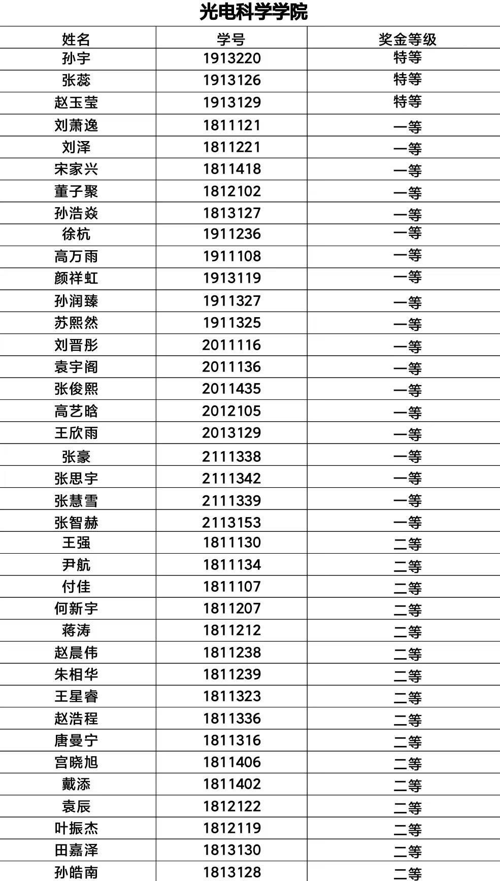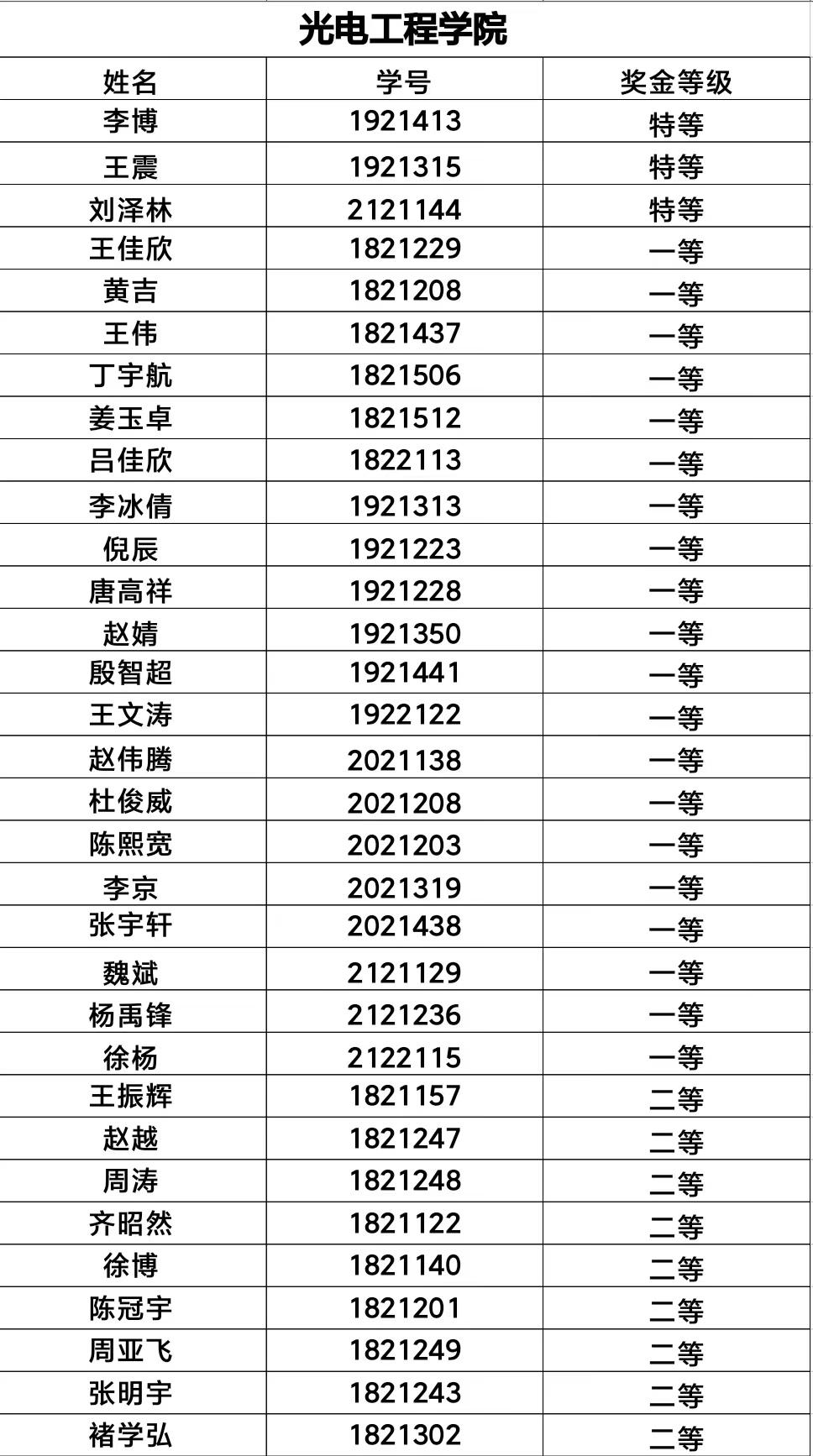 根據(jù)《長春理工大學光電信息學院優(yōu)秀學生獎學金評定辦法》、《長春理工大學光電信息學院單項獎學金管理辦法》的規(guī)定,現(xiàn)將相關(guān)獲獎學生名單公布如下。請全校師生監(jiān)督、審查。如有問題請在2022年5月27日之前向?qū)W生工作處反映。