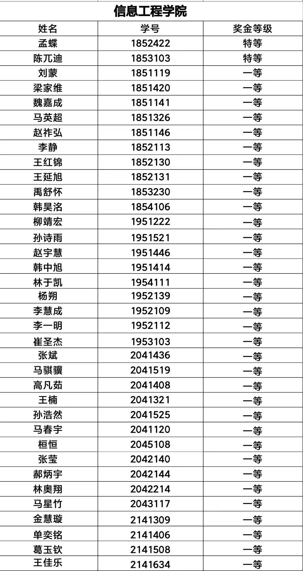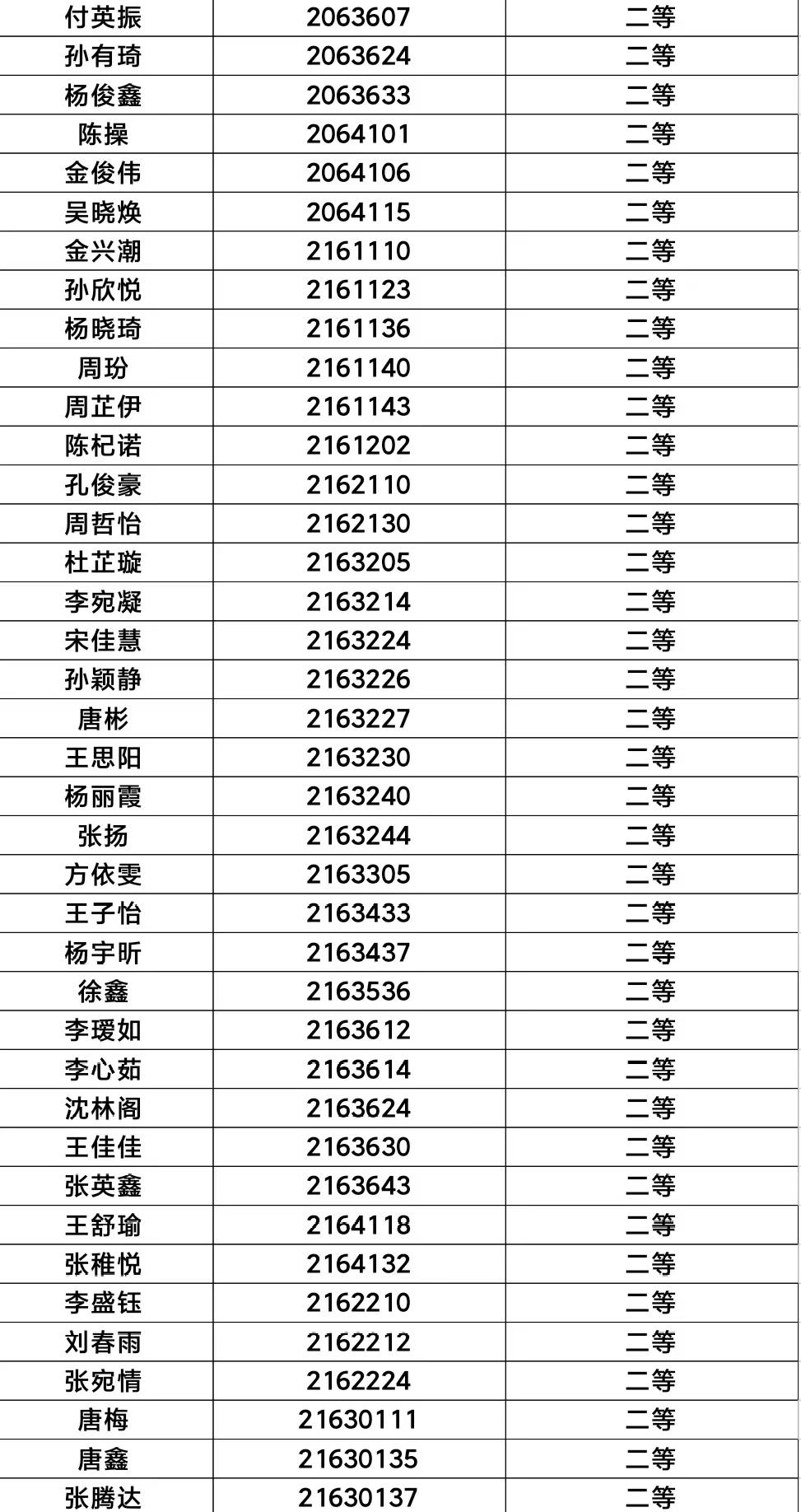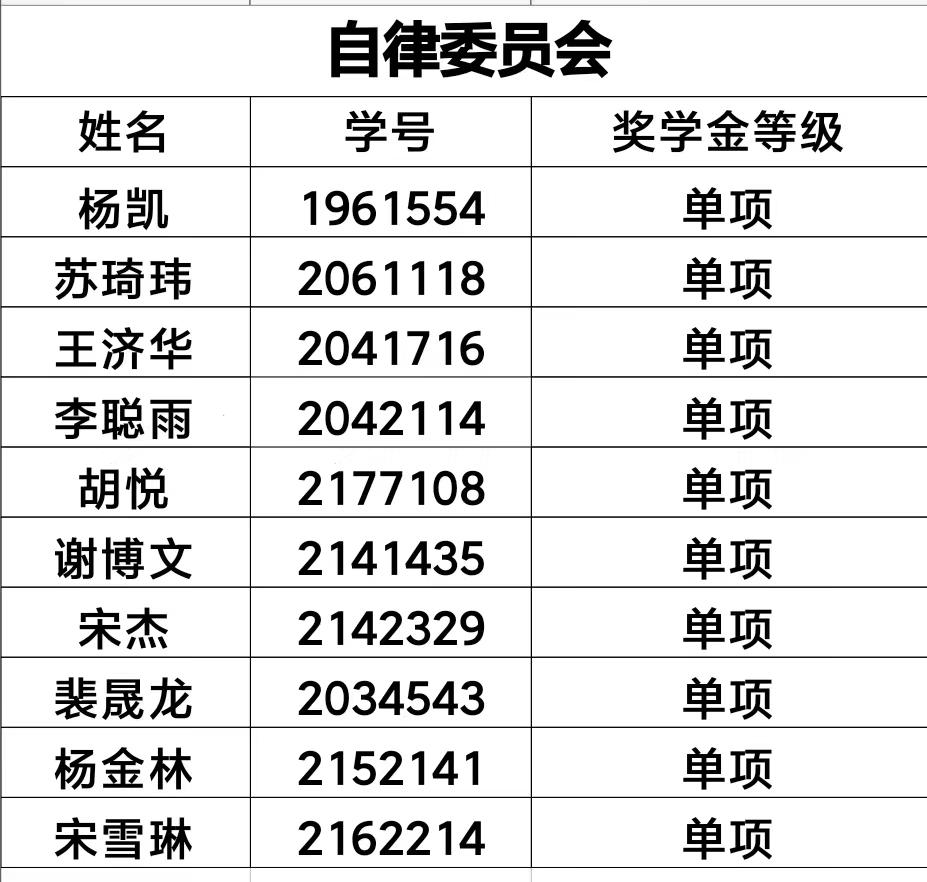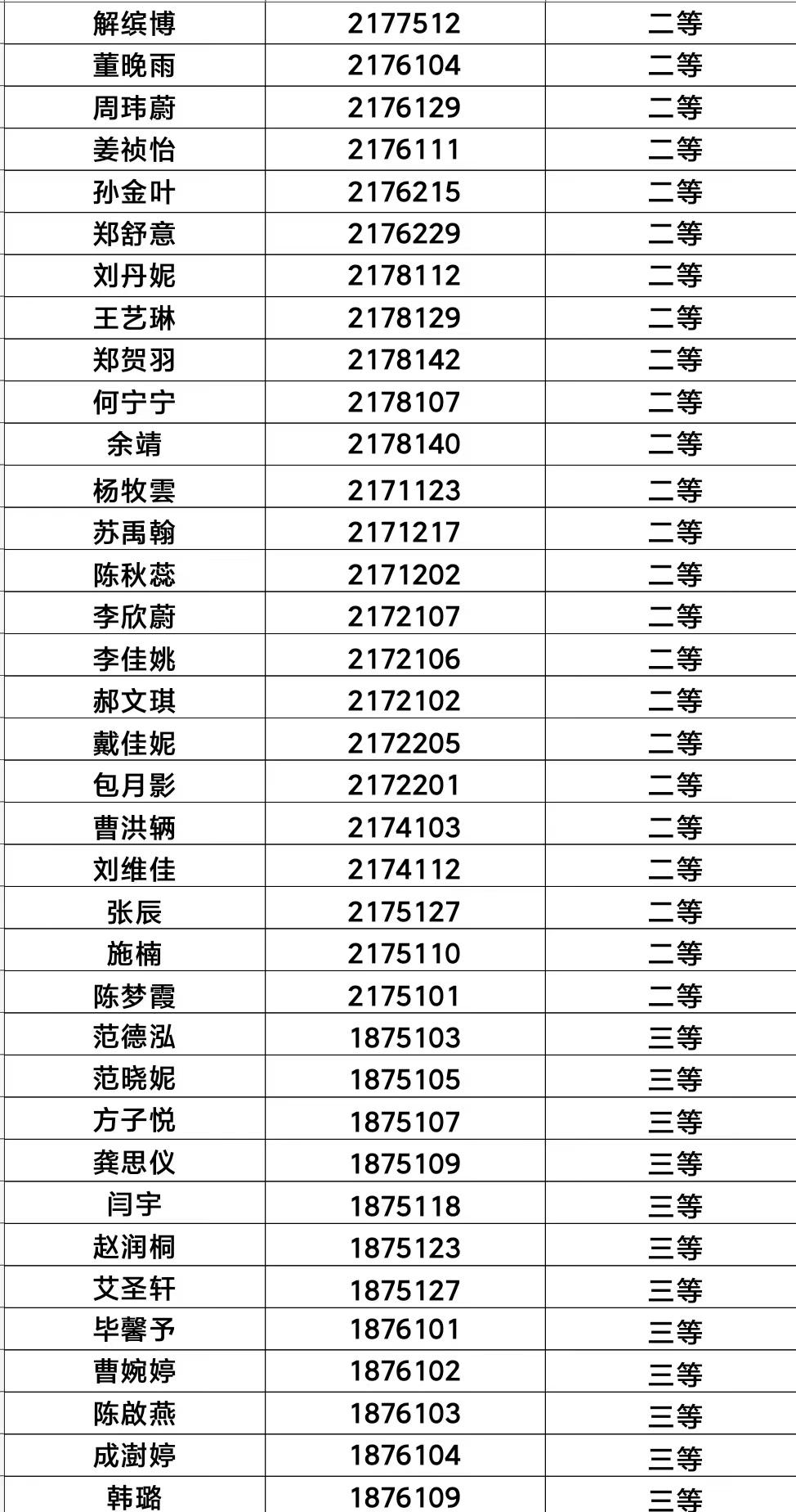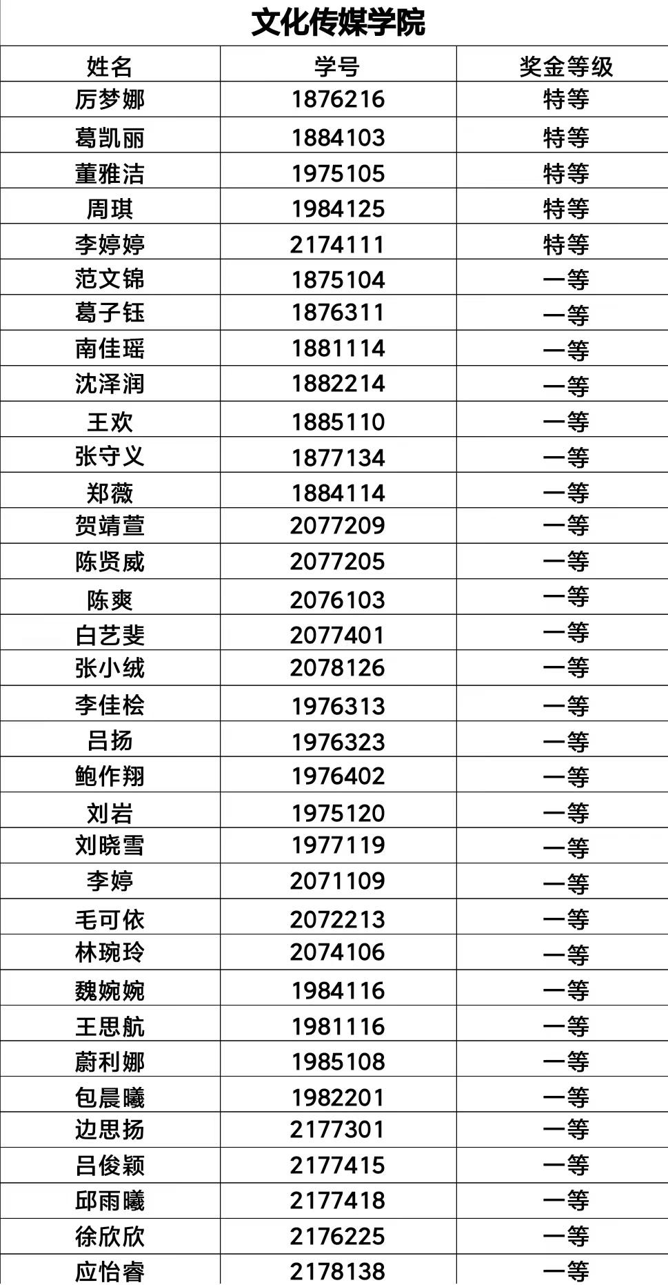 2021-2022學年度第一學期校內(nèi)優(yōu)秀學生獎學金公示