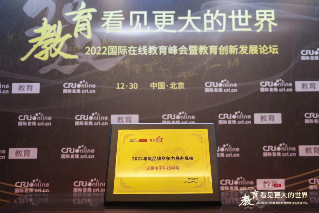 2022 年 12 月 30 日下午,由中央廣播電視總臺國際在線教育頻道主辦的 2022 國際在線教育峰會在北京舉辦。長春電子科技學(xué)院獲評“ 2022 年度品牌競爭力民辦高校”稱號。國際在線系中央廣播電視總臺主辦的中央重點(diǎn)新聞網(wǎng)站,此項(xiàng)榮譽(yù)的獲得,充分顯示了權(quán)威媒體與社會各界對長春電子科技學(xué)院辦學(xué)實(shí)力、社會競爭力和品牌影響力的認(rèn)可!國際在線教育峰會旨在為中國教育做出突出貢獻(xiàn)的人物和機(jī)構(gòu)優(yōu)秀案例進(jìn)行展示,目前已成為行業(yè)內(nèi)最權(quán)威、最具影響力的“年度教育盛典”,在內(nèi)業(yè)廣受好評。