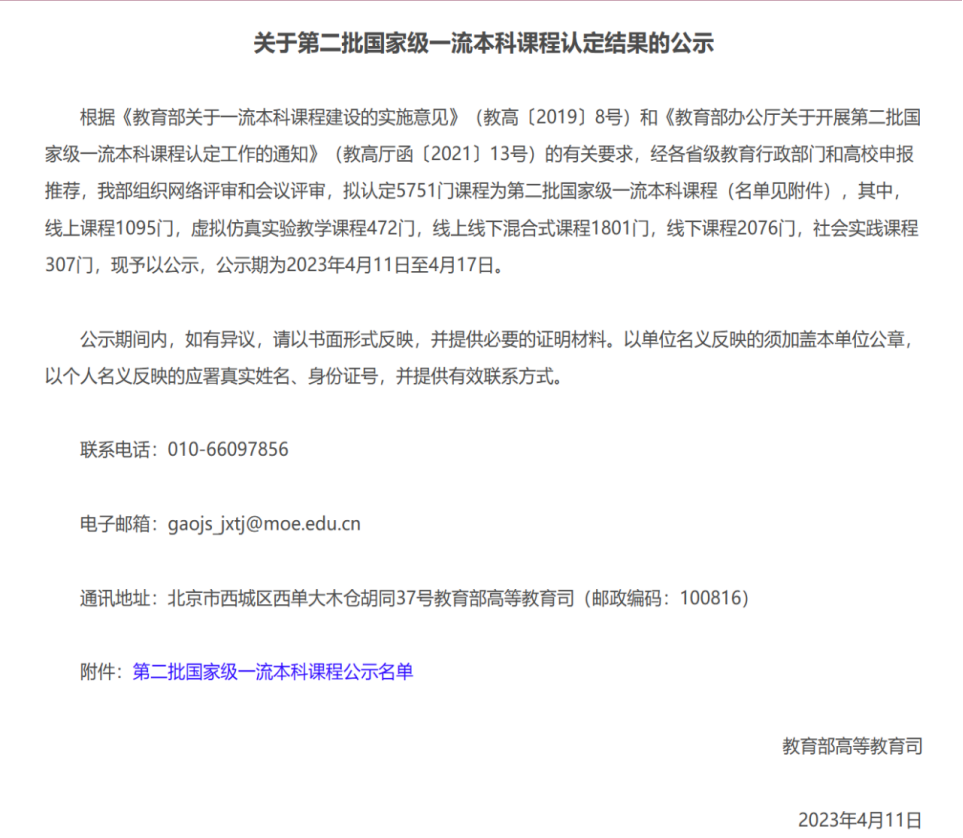 國家級一流本科課程是教育部推進一流課程“雙萬計劃”和一流專業(yè)“雙萬計劃”實施,推動新工科、新醫(yī)科、新農(nóng)科、新文科建設(shè)的首要任務(wù)和重要抓手。