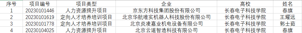 2023 年 4 月 6 日,教育部高校學生司發(fā)布《關于公布第二期供需對接就業(yè)育人項目立項名單的通知》(教育司函〔2023〕6號)。供需對接就業(yè)育人項目是教育部高校學生司為落實黨中央、國務院“穩(wěn)就業(yè)”“保就業(yè)”決策部署,深化產(chǎn)教融合、校企合作,推動人才培養(yǎng)與就業(yè)有機聯(lián)動、人才供需有效對接的育人項目。長春電子科技學院 6 個項目獲批立項,其中機電工程學院獲批 4 個項目。此次獲批的就業(yè)育人項目涵蓋定向人才培養(yǎng)培訓項目和人力資源提升項目 2 類,合作企業(yè)包括京東方科技集團股份有限公司、北京華航唯實機器人科技股份有限公司、北京炎凌嘉業(yè)機電設備有限公司、北京云道智造科技有限公司4家頭部大型企業(yè)。