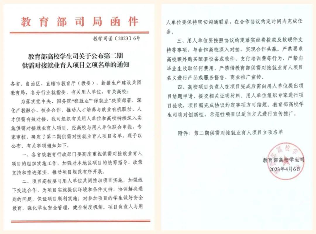 據(jù)了解,教育部供需對接就業(yè)育人項目旨在為推動就業(yè)與培養(yǎng)有機聯(lián)動、人才供需有效對接,幫助用人單位培養(yǎng)和招聘更多實用型、復合型和緊缺型人才,促進高校畢業(yè)生更加充分更高質(zhì)量就業(yè)。該項目為有意愿與高校開展人才供需對接和就業(yè)育人合作的用人單位提供平臺,用人單位結(jié)合國家戰(zhàn)略和實際需要提出項目指南,提供項目資源支持,通過與高校合作加快急需緊缺人才培養(yǎng),優(yōu)化自身人力資源配置。