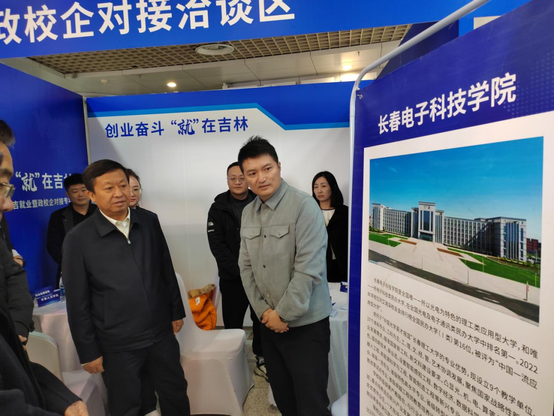 吉林省副省長(zhǎng)李國(guó)強(qiáng)在活動(dòng)現(xiàn)場(chǎng)對(duì)我校就業(yè)工作展位進(jìn)行了仔細(xì)觀看。他向我校就業(yè)指導(dǎo)中心主任宋濤詳細(xì)詢問了學(xué)校的歷史沿革、人才培養(yǎng)和專業(yè)優(yōu)勢(shì)等多方面內(nèi)容,并鼓勵(lì)在場(chǎng)師生要認(rèn)真落實(shí)好黨中央、國(guó)務(wù)院和省委、省政府關(guān)于做好高校畢業(yè)生就業(yè)工作的決策部署,廣泛搭建求職招聘對(duì)接平臺(tái),吸引更多畢業(yè)生留吉就業(yè)創(chuàng)業(yè),不負(fù)就業(yè)育人使命,推進(jìn)“創(chuàng)業(yè)奮斗‘就’在吉林”系列活動(dòng)走深走實(shí)。