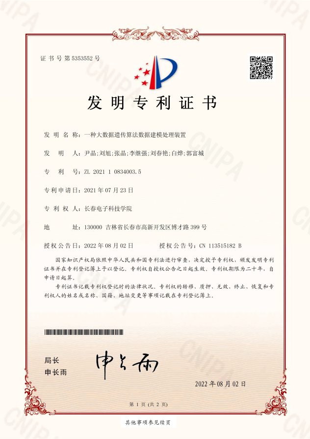 電子工程學院尹晶教授團隊帶領學生獲得授權的發(fā)明專利《一種大數(shù)據(jù)遺傳算法數(shù)據(jù)建模處理裝置》(專利號為:ZL202110834003.5 )與龍圖騰網(wǎng)科技(合肥)股份有限公司簽訂了有償轉(zhuǎn)讓合同。該成果通過設置多個建模芯片和接收器,能夠?qū)崿F(xiàn)多個遺傳算法數(shù)據(jù)建模的同時進行,可使得數(shù)據(jù)建模效率更高,同時也能夠利用接收器對不同的遺傳算法建模過程進行比較,方便查詢最佳的遺傳算法數(shù)據(jù)。