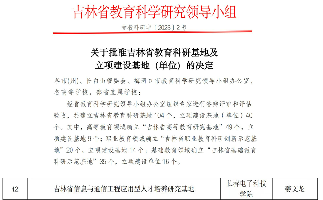 近日,吉林省教育科研基地遴選結(jié)束,經(jīng)專家審閱材料、現(xiàn)場答辯等環(huán)節(jié),我校電子工程學(xué)院申報的“吉林省信息與通信工程應(yīng)用型人才培養(yǎng)研究基地”順利獲批。
