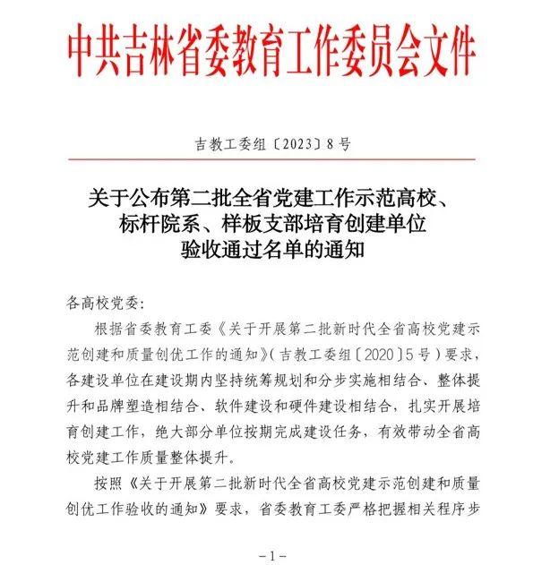近日,吉林省委教育工作委員會公布了第二批全省黨建工作樣板支部培育創(chuàng)建單位驗(yàn)收通過名單,我校電子工程學(xué)院教師黨支部順利通過第二批“全省黨建工作樣板支部”驗(yàn)收。