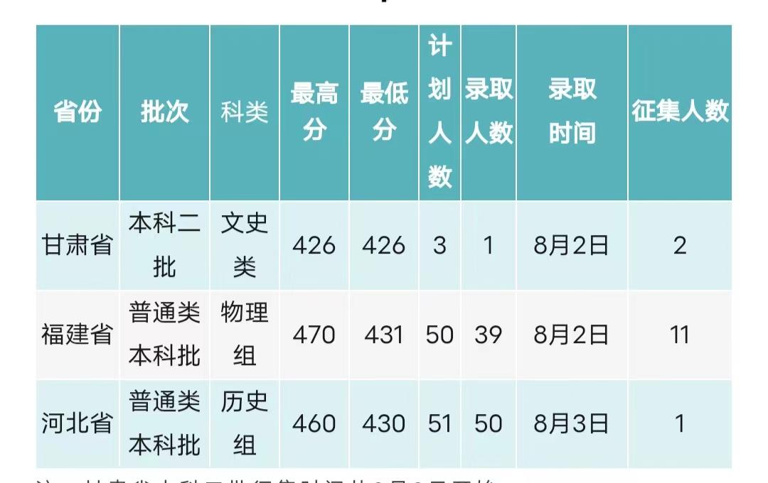 注:甘肅省本科二批征集時間從8月2日開始
