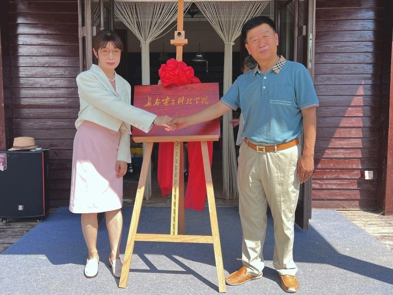 圖為長春蓮花山生態(tài)旅游度假區(qū)文體旅游科技局副局長尹一喃和我校副校長初長洲教授共同為“文化創(chuàng)意與美育實踐基地”揭牌