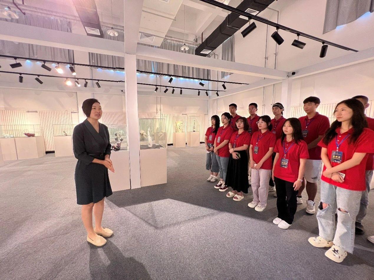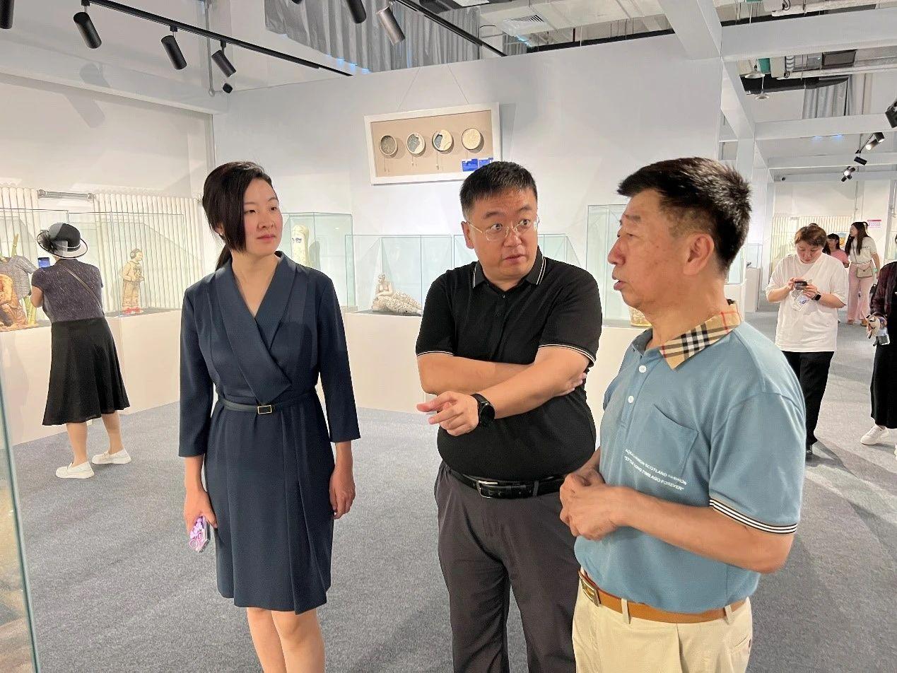 圖為長春蓮花山生態(tài)旅游度假區(qū)文體旅游科技局副局長尹一喃陪同我校副校長初長洲教授及師生代表參觀長春國際陶瓷展覽館展出的陶藝作品