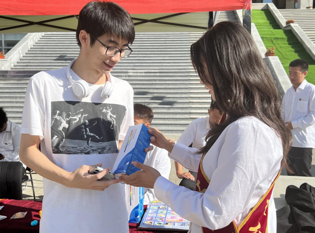 “風(fēng)光無限好,溫暖杯中找”機電工程學(xué)院為新一屆學(xué)子送上印有學(xué)院logo的不銹鋼保溫杯,懷有不銹之愛,溫暖長在。不銹鋼保溫杯是冷的,但保溫杯中的水可以一直保持炙熱,就像每位新生心中的青春與夢想可以在機電永遠散發(fā)熱量。型于外,暖于心。迎新過程中,為了幫助新生更好的適應(yīng)新的環(huán)境和新的社交圈子,機電工程學(xué)院準備了各種趣味小游戲,致力于緩解新生思鄉(xiāng)之情,為他們提供一個家的感覺。“不倒翁”小禮物希望新生可以做一個“不倒翁”,不管遇到多大的風(fēng)浪都能屹立不倒。“一錘定音”通過和猜拳蛋進行“石頭剪刀布”這種簡單卻趣味橫生的猜拳游戲,新老生間可以更好地增進彼此的關(guān)系和交流。“捏出精彩”在特制箱子中盲摸一個捏捏樂贈予新生,愿新一屆學(xué)子們能放飛青春的翅膀,飛得更高更遠,把驕傲與自信寫在萬里云天。在未來四年的機電生活中,青春在這里飛揚,人生在這里充實,前途在這里鑄就。