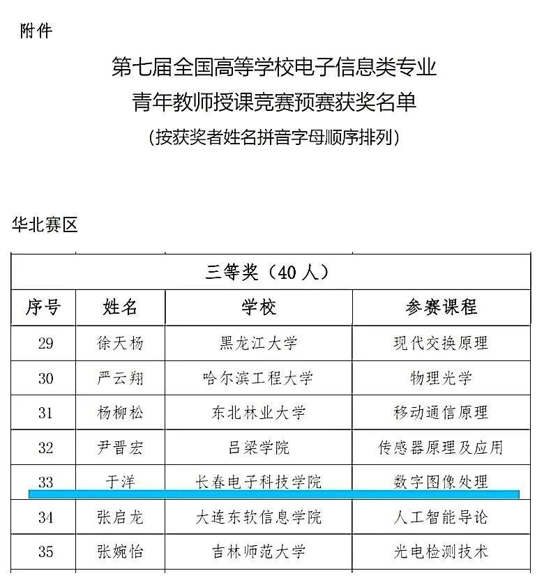 6月15日,第七屆全國高等學(xué)校電子信息類專業(yè)青年教師授課競賽拉開序幕,該賽事被納入2022版普通高校教師發(fā)展指數(shù),屬于具備影響力的教師競賽。經(jīng)過網(wǎng)絡(luò)匿名評(píng)審,組委會(huì)審定,競賽預(yù)賽于2023年9月8日順利結(jié)束,長春電子科技學(xué)院電子工程學(xué)院于洋教師榮獲華北賽區(qū)三等獎(jiǎng)。