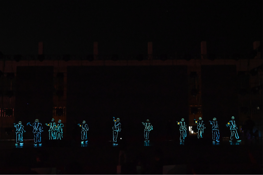 第三篇章:“霜英斗艷 律動長電”主要以長電文化藝術(shù)節(jié)為核心,舞臺上下聯(lián)動,展現(xiàn)長電學(xué)子風(fēng)采,把晚會推向高潮。