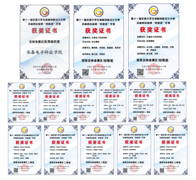 2023年9月9日,“第十一屆全國大學(xué)生機(jī)械創(chuàng)新設(shè)計(jì)大賽”吉林賽區(qū)省賽“創(chuàng)意組”比賽在長春師范大學(xué)舉辦。我校機(jī)電工程學(xué)院共選派13支隊(duì)伍參賽,與來自吉林大學(xué)、長春理工大學(xué)、東北電力大學(xué)、北華大學(xué)等院校,共238項(xiàng)參賽作品進(jìn)行激烈角逐。最終13支隊(duì)伍全部獲獎(jiǎng),取得了特等獎(jiǎng)2項(xiàng);一等獎(jiǎng)6項(xiàng);二等獎(jiǎng)4項(xiàng);三等獎(jiǎng)1項(xiàng)的好成績。