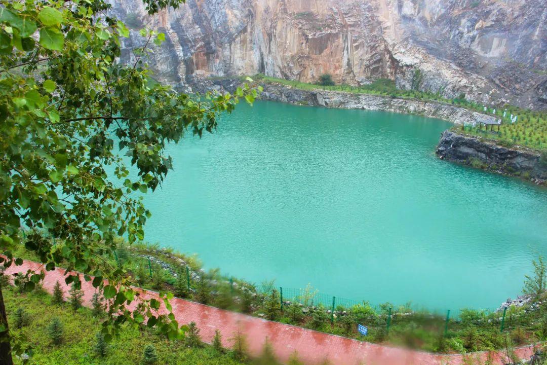 走進小天池,湖水清澈見底,沒有濾鏡,不用調色,小天池本身就已展現出一種攝人心魄的美,甚至讓人忘記幾十年前這里曾是工業(yè)廢棄之地。不同顏色的石灰?guī)r經過陽光在水中的反射,展現出不同的顏色。雖然是上世紀七十年代留下的廢棄礦坑,但是通過環(huán)境的治理,這里儼然已經成為人們爭相前往的生態(tài)旅游度假區(qū)。實踐隊成員們也不禁在此處駐足停留,感受工業(yè)遺留經修復后與自然環(huán)境結合之美。