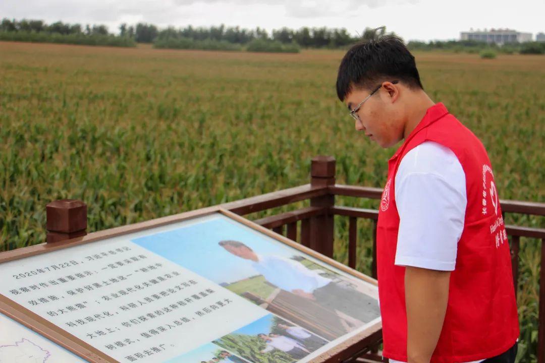 沿著習近平總書記的足跡,實踐隊員們踏上百萬畝基地觀景臺,立足總書記的眺望點,在感受廣闊黑土無限魅力的同時,更見黑土地遼闊。