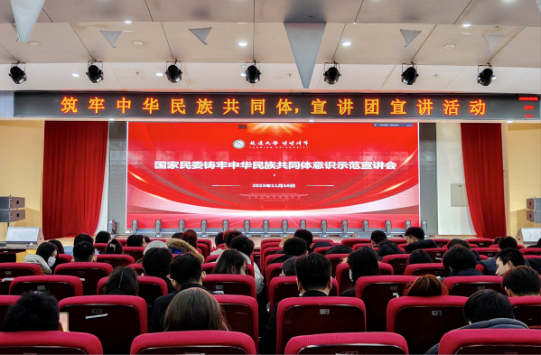 為深入開展學(xué)習(xí)貫徹習(xí)近平新時(shí)代中國特色社會(huì)主義思想主題教育,貫徹落實(shí)習(xí)近平總書記關(guān)于加強(qiáng)和改進(jìn)民族工作的重要思想。11月16日上午,我校黨員教師代表200余人在圖書館報(bào)告廳在線收看國家民委組建鑄牢中華民族共同體意識宣講團(tuán)示范宣講活動(dòng)。