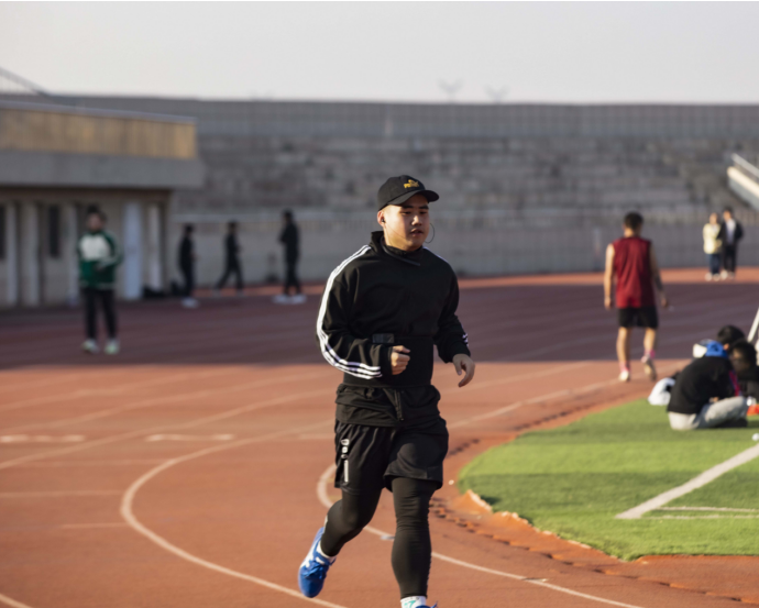他從操場走來