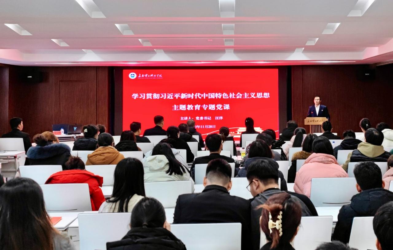 為推動(dòng)學(xué)習(xí)貫徹習(xí)近平新時(shí)代中國(guó)特色社會(huì)主義思想主題教育走深走實(shí),引導(dǎo)黨員干部牢記職責(zé)使命、主動(dòng)擔(dān)當(dāng)作為。11月28日下午,長(zhǎng)春電子科技學(xué)院召開(kāi)了學(xué)習(xí)貫徹習(xí)近平新時(shí)代中國(guó)特色社會(huì)主義思想主題教育專(zhuān)題黨課報(bào)告會(huì)。學(xué)校黨委書(shū)記汪洋以“堅(jiān)持不懈用習(xí)近平新時(shí)代中國(guó)特色社會(huì)主義思想凝心鑄魂”為題講授專(zhuān)題黨課。