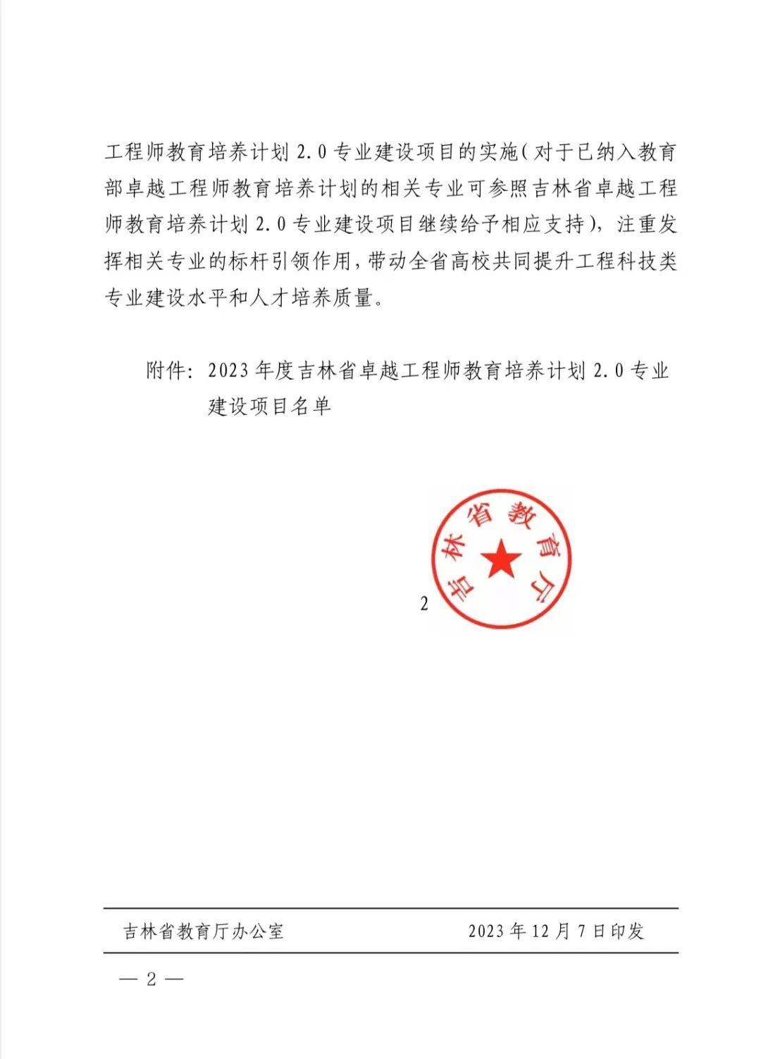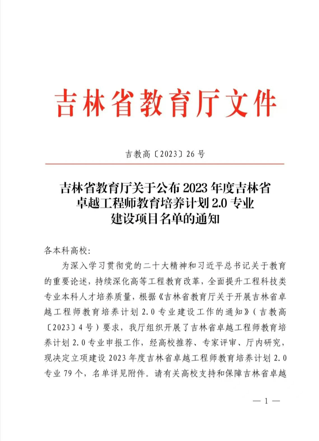 卓越工程師教育培養(yǎng)計劃是教育部為深入貫徹落實黨的二十大精神,持續(xù)深化高等工程教育改革,全面提升工程科技類專業(yè)本科人才培養(yǎng)質(zhì)量的重要抓手。自吉林省教育廳開展卓越工程師教育培養(yǎng)計劃工作以來,學校高度重視,加快新工科專業(yè)建設,大力培養(yǎng)卓越工程科技人才,全面提升人才培養(yǎng)質(zhì)量。此次獲批吉林省卓越工程師教育培養(yǎng)計劃2.0專業(yè)建設項目,是我校工程科技類專業(yè)建設取得的顯著成果,體現(xiàn)了我校應用型高校的辦學特色。