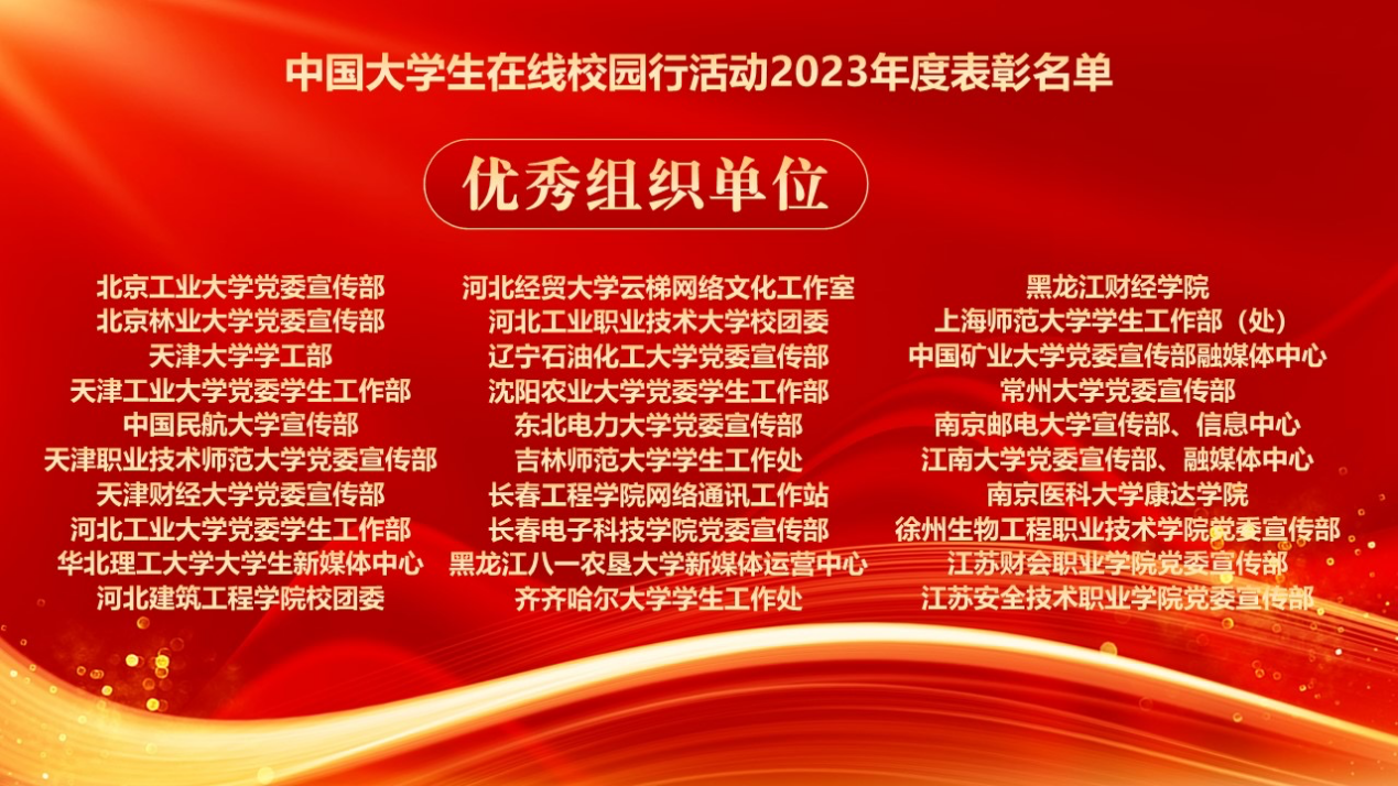 近日,教育部中國(guó)大學(xué)生在線公布了2023年度中國(guó)大學(xué)生在線校園行活動(dòng)表彰名單,長(zhǎng)春電子科技學(xué)院黨委宣傳部獲評(píng)“優(yōu)秀組織單位”。