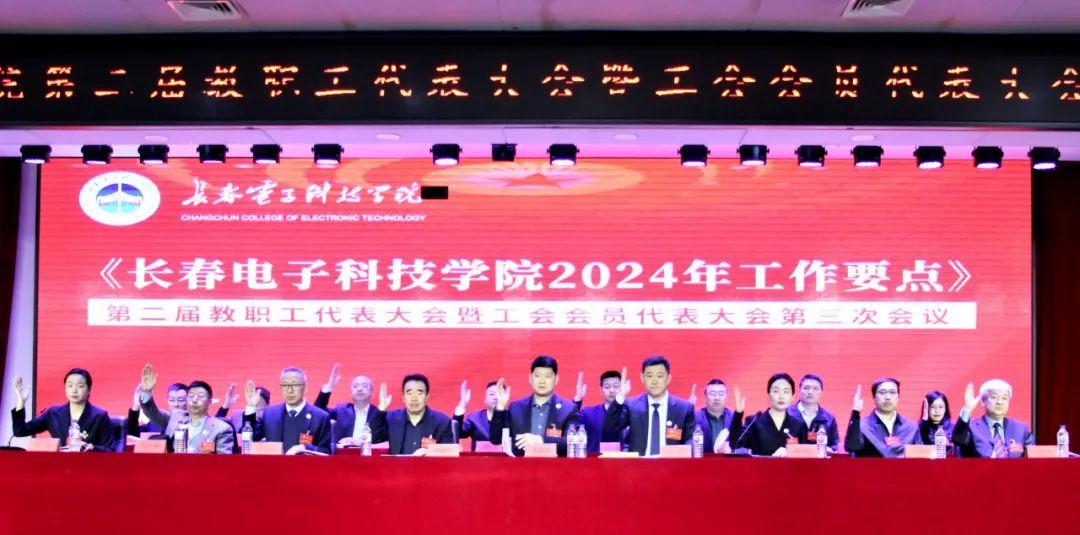 2024年3月29日,長春電子科技學(xué)院在圖書館報(bào)告廳隆重召開了第二屆教職工代表大會(huì)暨工會(huì)會(huì)員代表大會(huì)第三次會(huì)議。會(huì)議集中圍繞堅(jiān)定中國特色社會(huì)主義思想,深入學(xué)習(xí)貫徹習(xí)近平總書記關(guān)于工人階級和工會(huì)工作的重要論述精神,引領(lǐng)廣大教職工凝心聚力,共同繪就新時(shí)代學(xué)校工會(huì)工作新藍(lán)圖為主題展開討論,深入、全面地總結(jié)了去年的工作成果,并精心部署了2024年的核心任務(wù),開創(chuàng)學(xué)校高質(zhì)量發(fā)展的新篇章。