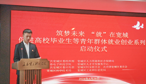 為深入貫徹落實習(xí)近平總書記關(guān)于以人口高質(zhì)量發(fā)展支撐東北全面振興等系列重要指示精神,吸引高校畢業(yè)生留聚寬城就業(yè)創(chuàng)業(yè),宣傳落實省、市高校畢業(yè)生就業(yè)創(chuàng)業(yè)工作決策部署,4月26日上午,由寬城區(qū)人才服務(wù)中心主辦、長春電子科技學(xué)院承辦的筑夢未來“就”在寬城促進高校畢業(yè)生等青年群體就業(yè)創(chuàng)業(yè)系列活動儀式成功啟動。長春市人才服務(wù)中心副主任、組織部、宣傳部、區(qū)婦聯(lián)、團區(qū)委、人社局、科技局、工信局、各街道、開發(fā)區(qū)(蘭家鎮(zhèn))、區(qū)內(nèi)院校、駐區(qū)企業(yè)代表參加此次活動,會議由我校就業(yè)創(chuàng)業(yè)指導(dǎo)中心張丹主持。